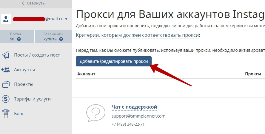 После активации услуги "Использование своих прокси" снова переходим в раздел "Мои прокси" и нажимаем "Добавить/редактировать прокси".