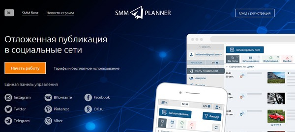 SMMPlanner - сервис позволяет совершать и настроить отложенные публикации в социальные сети, такие как Вконтакте, Instagram, Facebook, Twitter и Одноклассники.