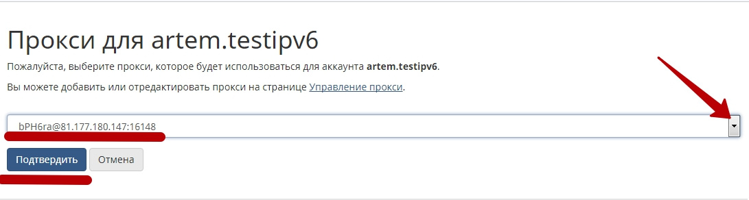 В новом окне выбираем прокси для аккаунта и нажимаем "Подтвердить".