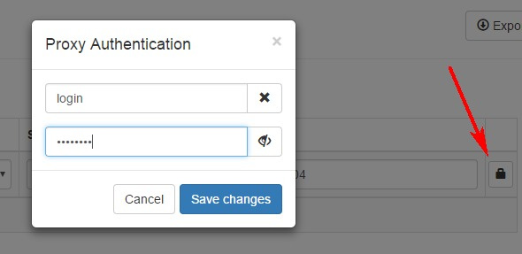 Если у вас прокси с авторизацией, т.е. приватные, то нажимаем на иконку замка и указываем логин и пароль от прокси: