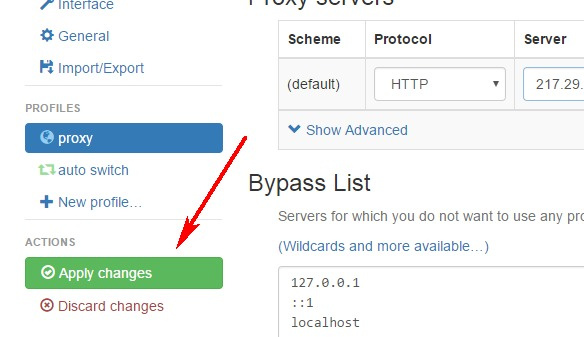 Если вы хотите, чтобы определенные сайты работали БЕЗ прокси, то их необходимо добавить в поле Bypass List при редактировании профиля.